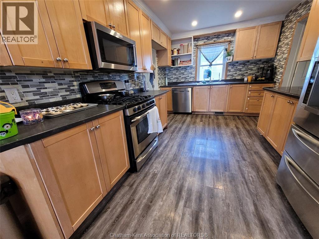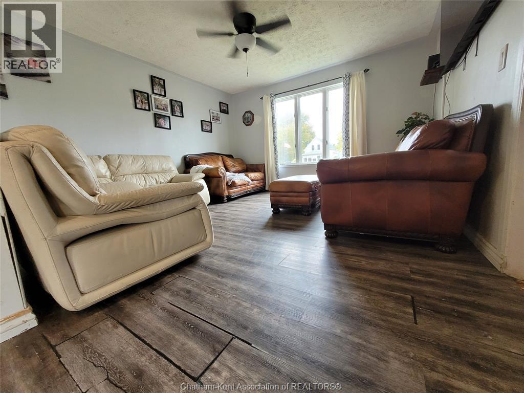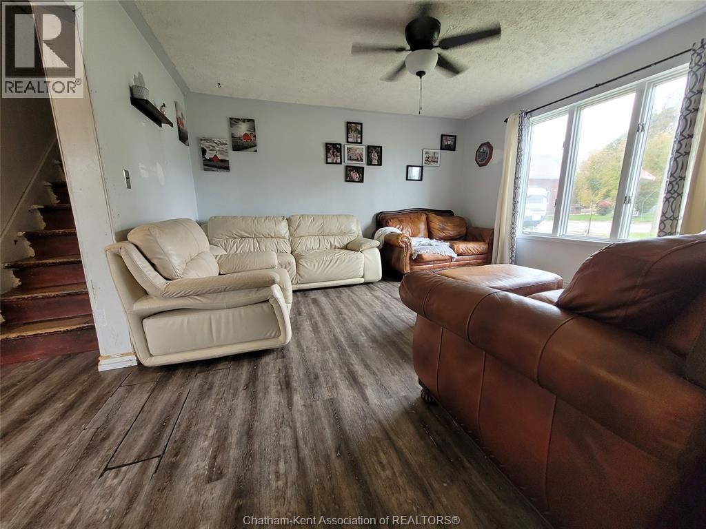 This 1 and 1/2 storey home has everything a young family desires, 4-bedrooms, large yard, quiet surroundings in a small town, who could want more. Don't forget the empty nesters wanting to downsize. This home has comfortable main floor living with 2 large rooms for dinner engagements, an open concept kitchen and you can entertain in your generous and open living room. You get a wonderful layout, spacious upper bedrooms with closets, oversized windows for great light and separate heat pump for heat and AC, main floor is Natural gas forced air with central AC. The whole family will get use of the ""2-car"" heated and insulated garage. The concrete pad provides easy and dry access while the fully fenced yard grants added security. This 2-car area even has room for your hobbies. Centrally located in the heart of Tupperville, you are only 20 minutes to Chatham, 30 to Sarnia and 7 minutes to Wallaceburg or Dresden. This large lot still allows room for a concrete patio and your own fire pit. You will be sorry if you miss this home. Please book your personal viewing, see what Tupperville has to offer you. (id:4555)