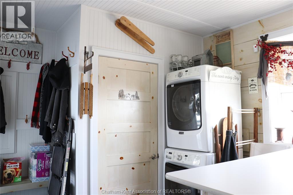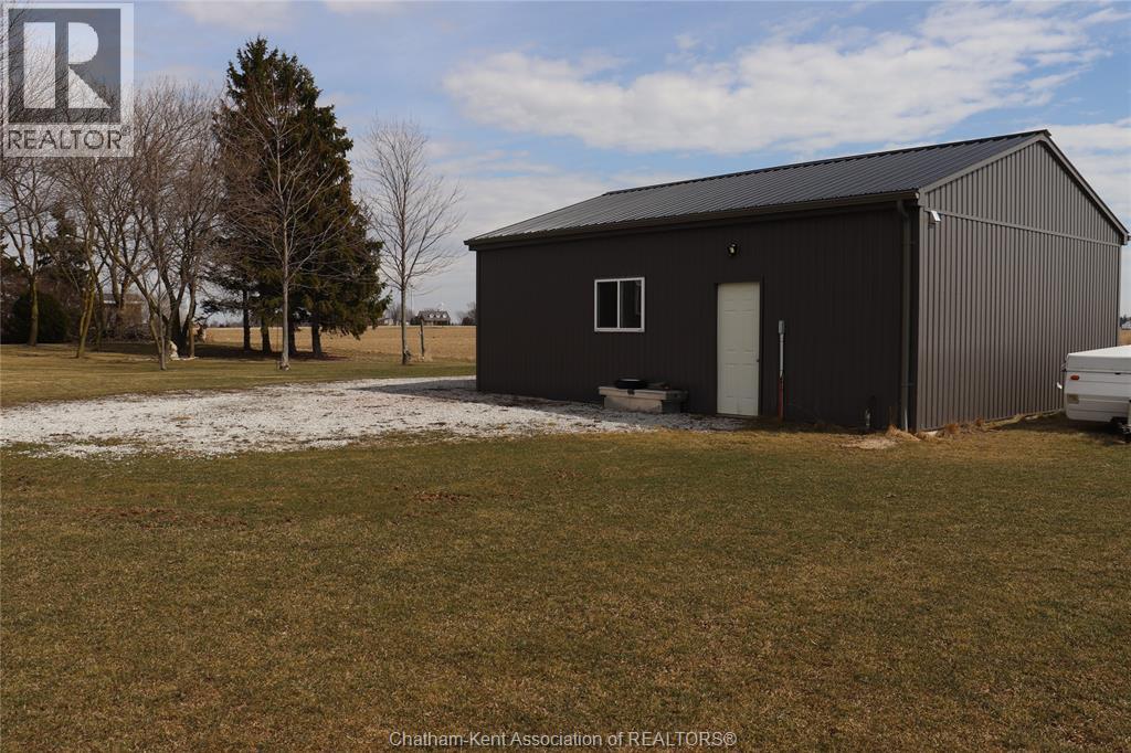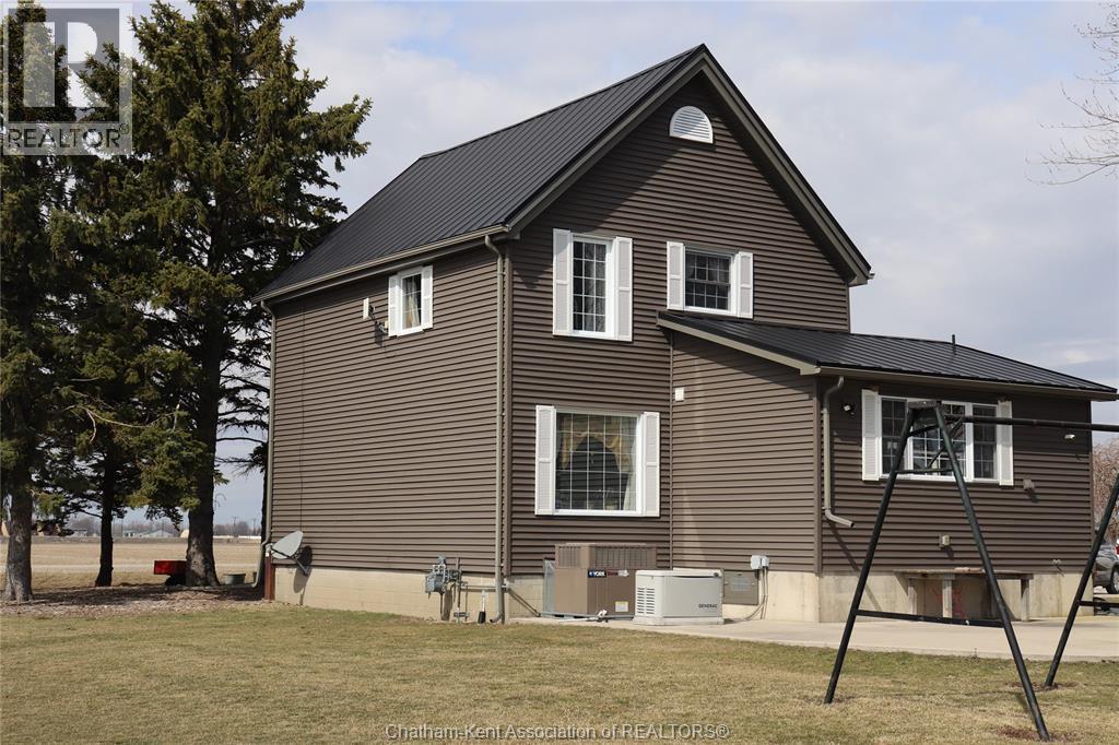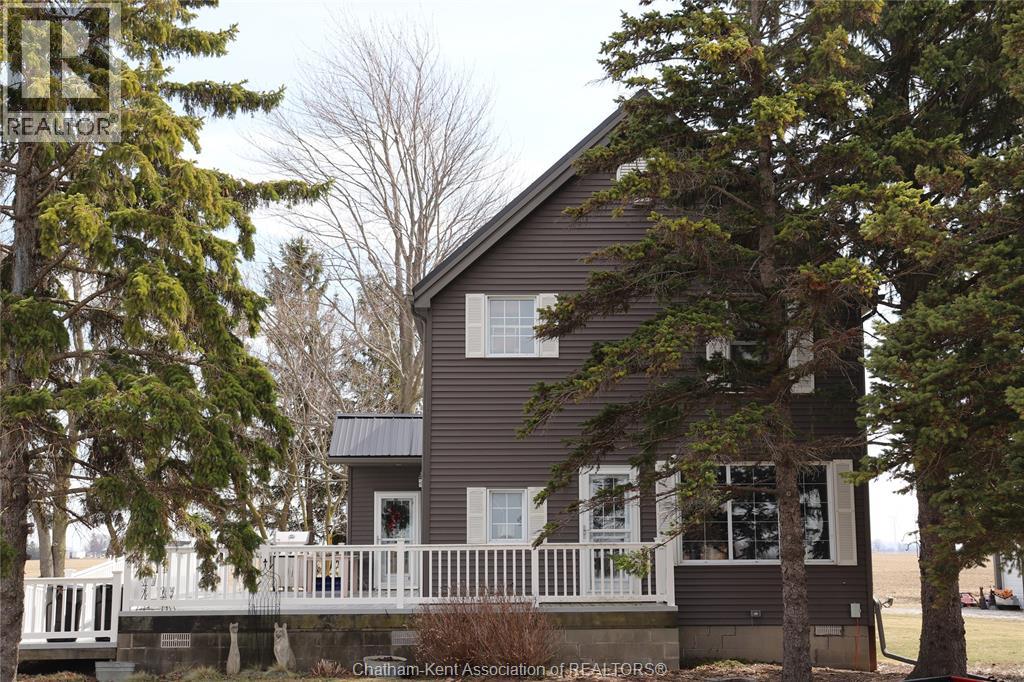 A well located country home just one half mile south of the South Buxton Raceway off A D Shadd Rd. The 1900 era farmhouse has been totally updated with all modern convenience. Walking into the side entrance foyer you will experience a Better Homes and Gardens kitchen, complete with a 11 foot bar/eating space for large or small family gatherings. There are 2 refrigerators in this amazing kitchen. There is main floor laundry with a pantry just off kitchen. The front entrance comes into the living room. There is a den or if needed bedroom on main floor that has a large window overlooking the rear yard and open space farmland. The upper level has 3 bedrooms, primary with 2 pc ensuite. There is also a walk-in closet space on 2nd level. The house is maintenance free with a large vinyl deck. The house has a chair lift on the stairs to 2 nd level that can stay or be removed. This property also includes a recent 2 bay shop with overhead doors for all your toys. The shop is heated with natural gas radiant heat. The yard is ideal for someone that craves the outdoors. Some mature trees and open space on this 1.125 acre lot. (id:4555)