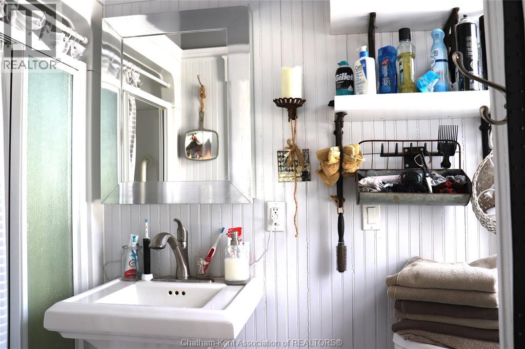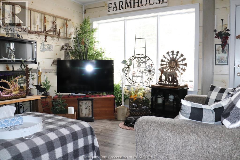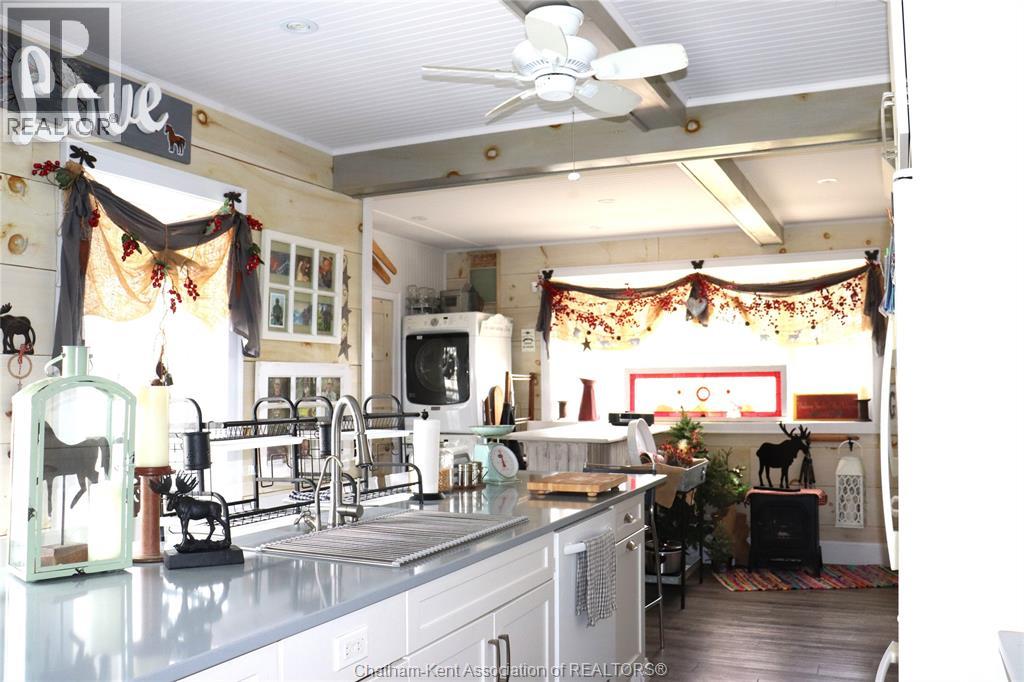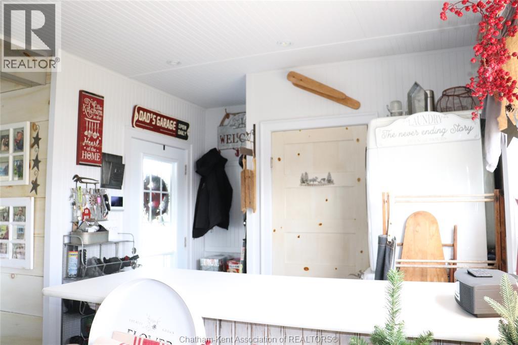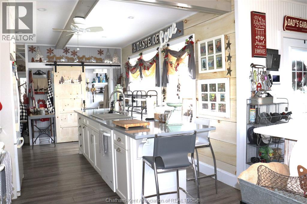 A well located country home just one half mile south of the South Buxton Raceway off A D Shadd Rd. The 1900 era farmhouse has been totally updated with all modern convenience. Walking into the side entrance foyer you will experience a Better Homes and Gardens kitchen, complete with a 11 foot bar/eating space for large or small family gatherings. There are 2 refrigerators in this amazing kitchen. There is main floor laundry with a pantry just off kitchen. The front entrance comes into the living room. There is a den or if needed bedroom on main floor that has a large window overlooking the rear yard and open space farmland. The upper level has 3 bedrooms, primary with 2 pc ensuite. There is also a walk-in closet space on 2nd level. The house is maintenance free with a large vinyl deck. The house has a chair lift on the stairs to 2 nd level that can stay or be removed. This property also includes a recent 2 bay shop with overhead doors for all your toys. The shop is heated with natural gas radiant heat. The yard is ideal for someone that craves the outdoors. Some mature trees and open space on this 1.125 acre lot. (id:4555)