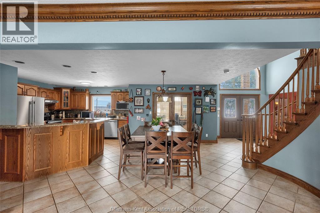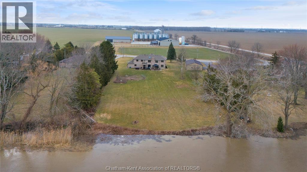 Create your family legacy on the river. Don't miss out on this 3500 sq ft all-brick home, sitting on a 1.45 acre lot with full view of the river. Riverfront properties are not created equally, but this property checks the boxes - it is square to the river, unobstructed views and is clean and simple with gentle sloping grass to the bank. Located just outside of Chatham with picturesque rural and waterfront views this executive property offers tremendous value. The massive floorplan has an open central staircase with second level mezzanine that sits above the two storey living room. Every room is oversized with endless opportunity to reconfigure living and dining areas. Solid oak trim and doors throughout the home lend themselves to current wood focused design themes. Main level laundry with mudroom to back deck. Full three bay garage with entrance to basement and kitchen/laundry hallway. The second floor has three large bedrooms sharing a 4 pc bath and a 625 sq ft primary bedroom. The primary has a walkout balcony overlooking the river, walk-in closet, 5 pc ensuite bathroom and jacuzzi tub. Absolutely no compromise or expense spared on square footage in this home. One would be shocked by the quote to have just the shell of this home built today! Partially finished full basement is ready for floors and ceiling finishing which would add another 1500 sq ft of living space to the home. Recent updates include: Windows 2020, Roof 2023, Garage Doors 2022, Water Heater 2024 (id:4555)